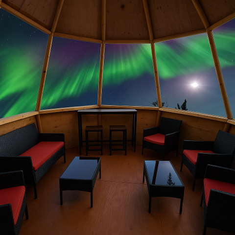 - Access to cabin, aurora viewing decks and assigned tipi for the night either glass or traditional tipi